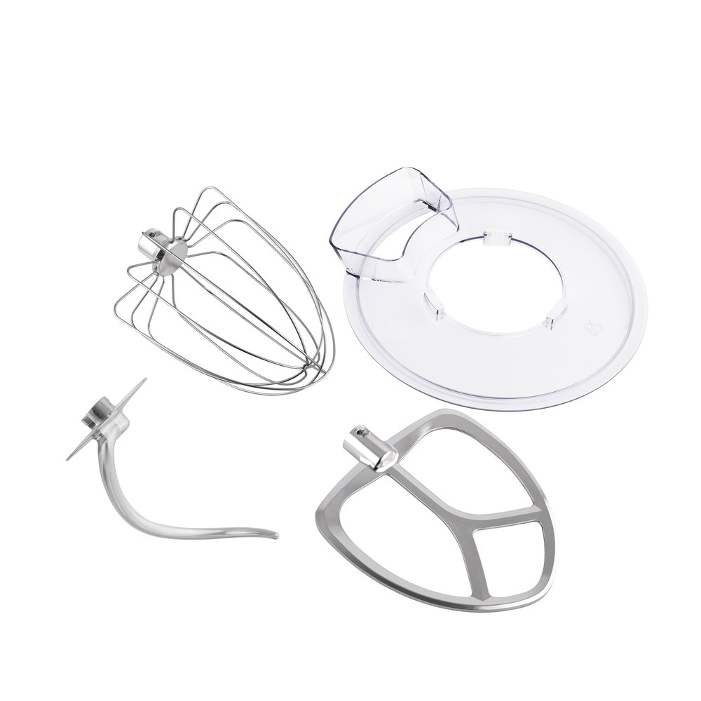 Комплектация Чаша, крюк для теста, лопатка для перемешивания негустых ингредиентов, венчик для взбивания жидких ингредиентов