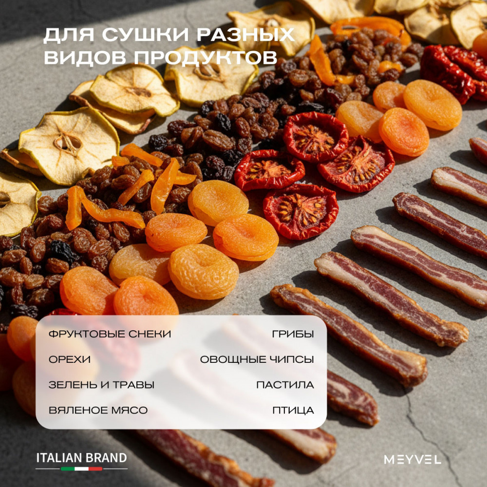 Применение: Овощи, фрукты, пастила, йогурт, травы, грибы, мясо, рыба, колбасы