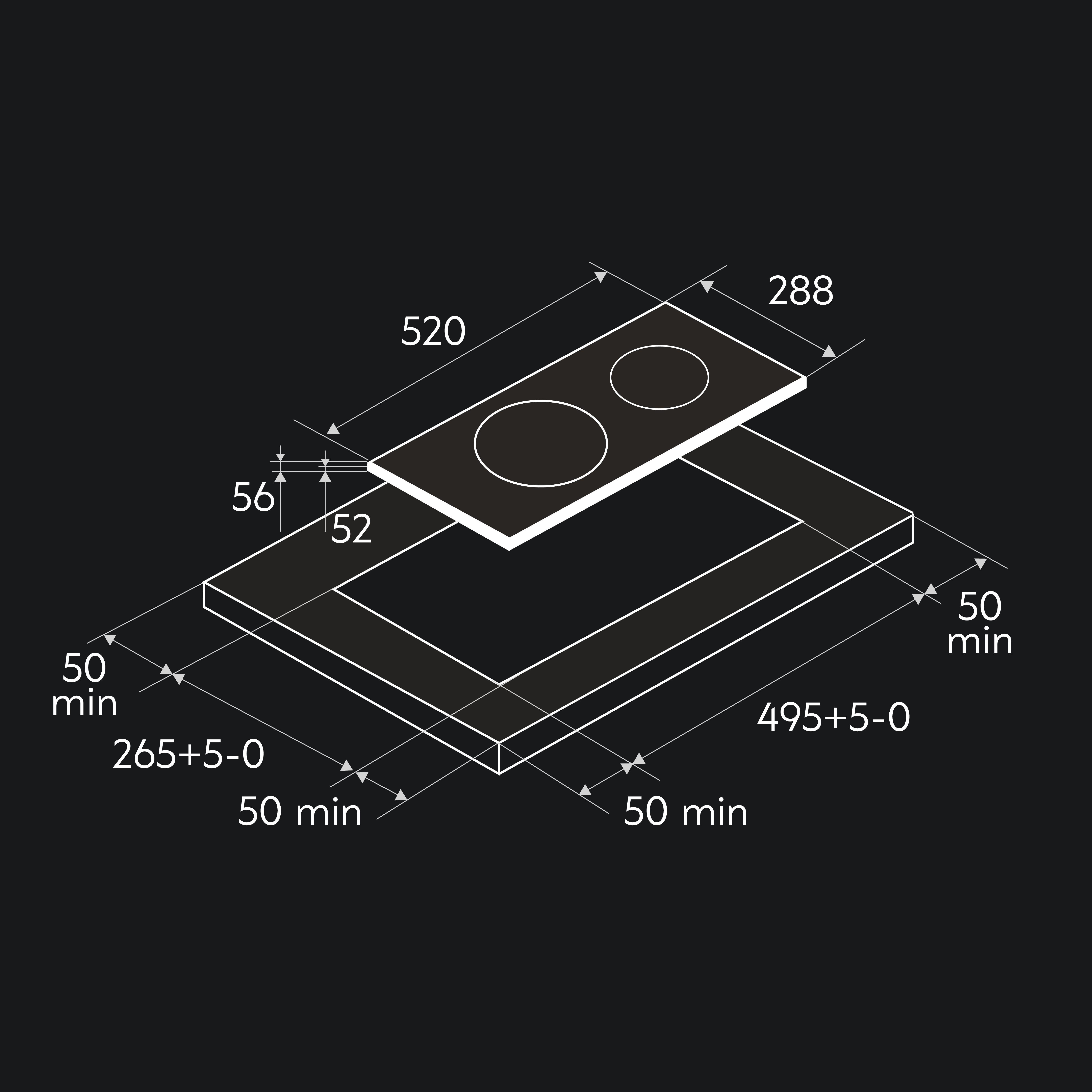 Размеры продукта, мм: 288×520×56