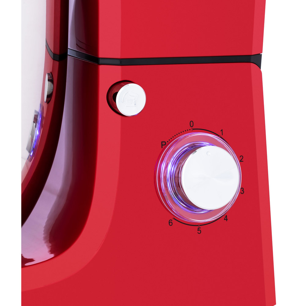 Голова миксера откидывается при нажатии кнопки, что позволяет легко и без усилий менять насадки