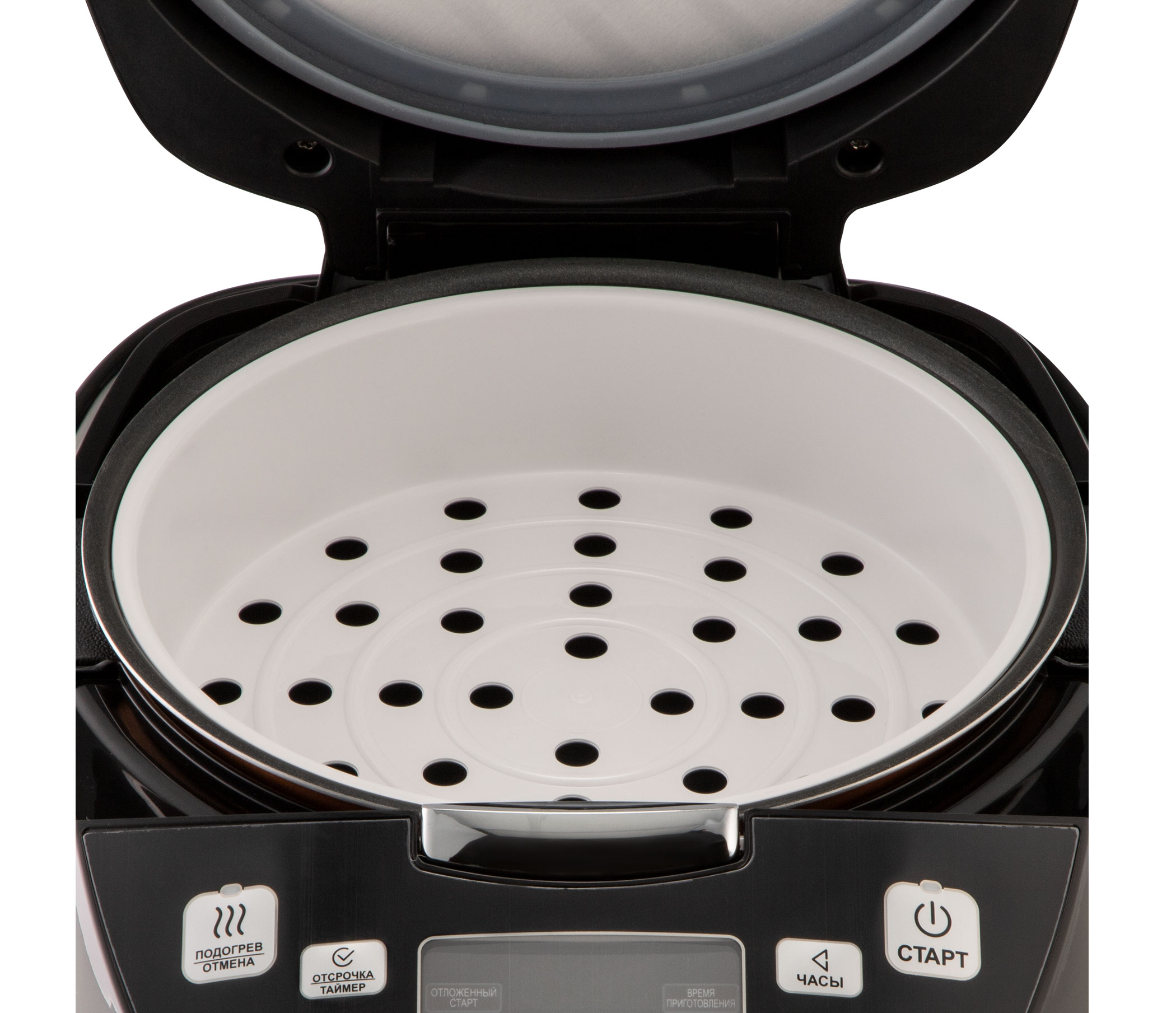 В комплекте: подставка для варки на пару, мерный стакан, ложка для риса/супа