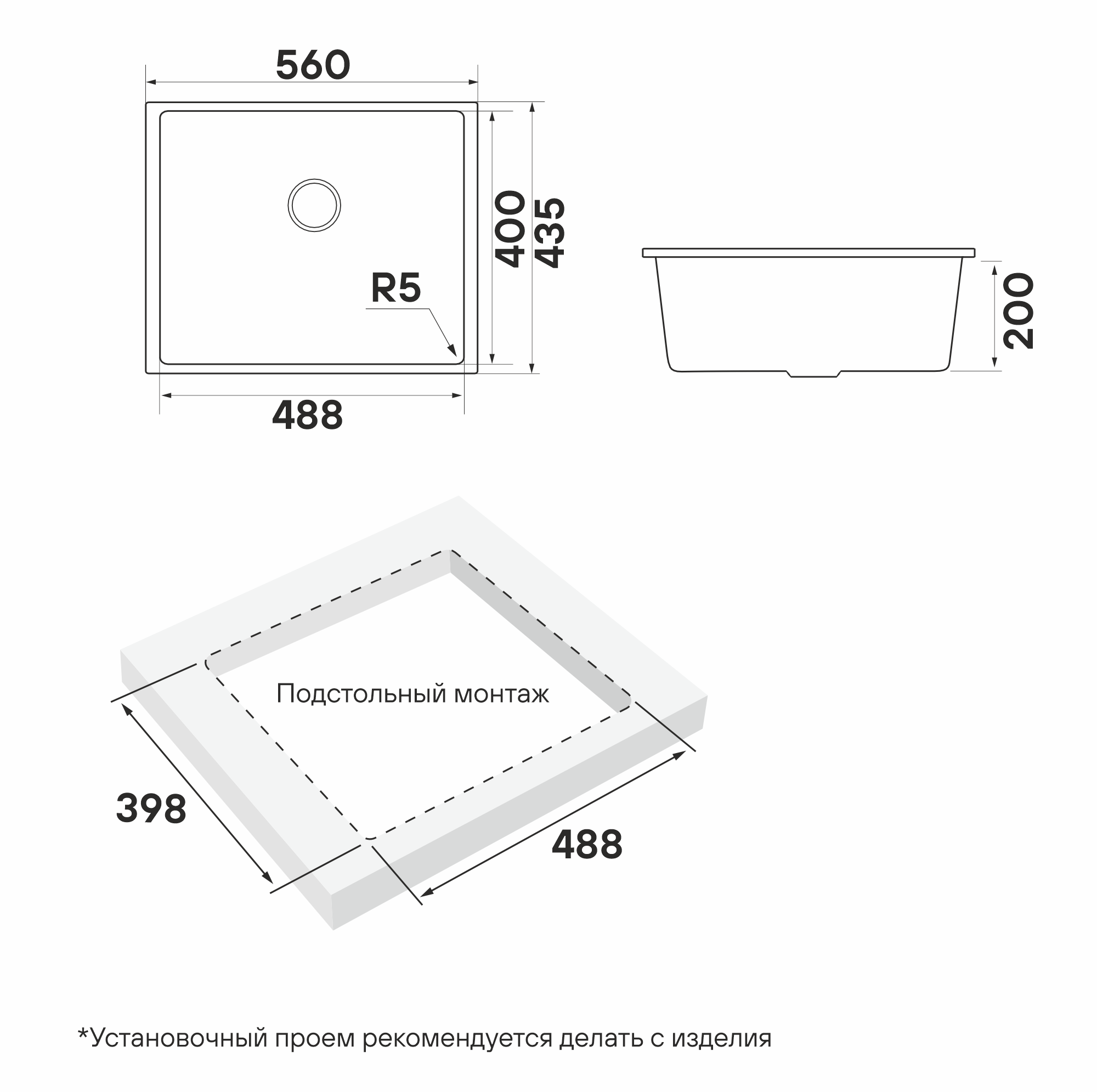 Монтажная длина х ширина: 398 х 488 мм