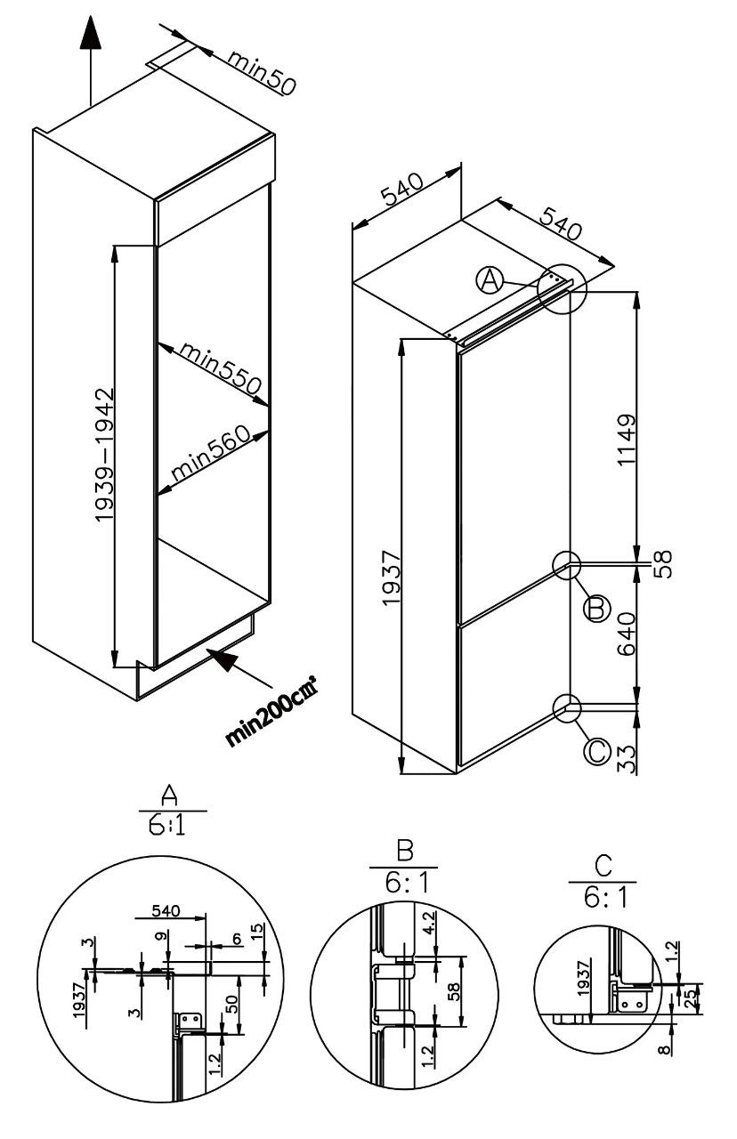 Встраиваемый холодильник MEFERI MBR193 LOW FROST LIGHT